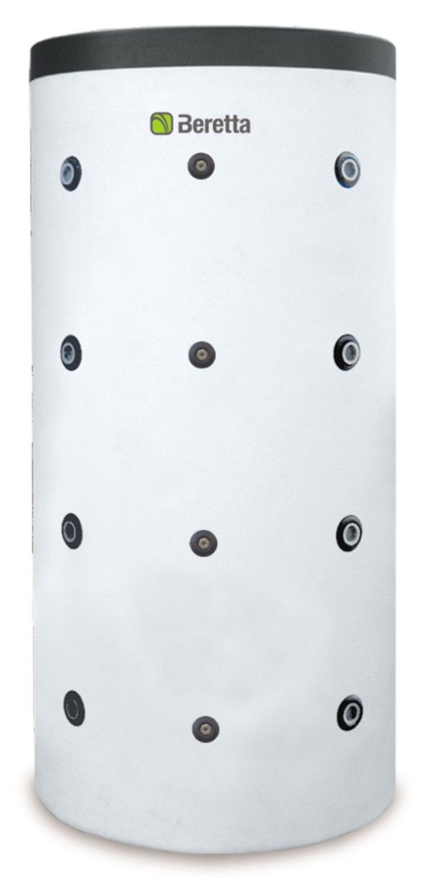 Eight fittings at different heights for the use of different types of heat generators for the best stratification.